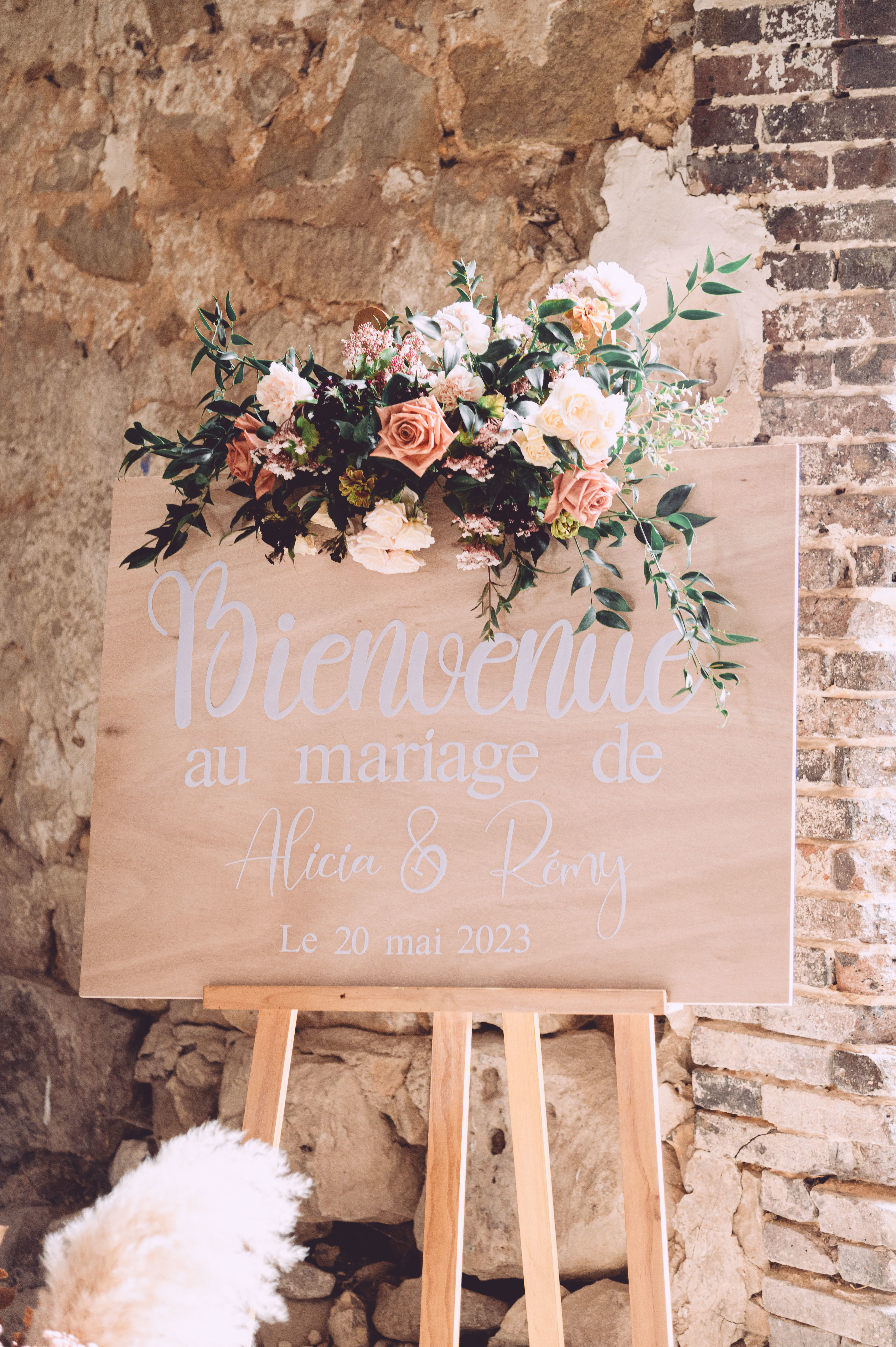 Avec très peu de décorations, nous voulions avoir des compositions florales grandioses : c'est ce que Marie a su nous créer! Gentille et à l'écoute, tout était magnifique et exactement comme nous l'avions imaginé. Un grand merci pour avoir sublimé notre jour J! Alicia & Rémy